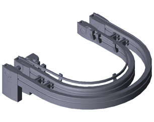 – 彎道模塊自帶驅(qū)動(dòng)裝置。電機(jī)安裝在右側(cè) (MA = R),左側(cè)(MA = L),軌道寬度 bT 從 240 mm起,也可以安裝在中間 (MA = M)。